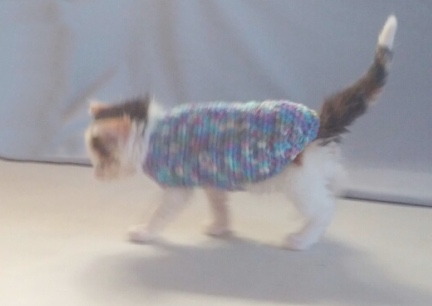 | cat dress dressed coat sweater sweaters trick training train teach calico kitty kitten agility Mrs. Dillon |
