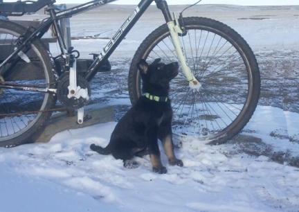 german shepherd dogs puppy bicycle running springer attachement |