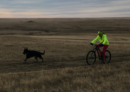 | german shepherd dog bicycle shreading trails mountain bike mt pup bi colored |