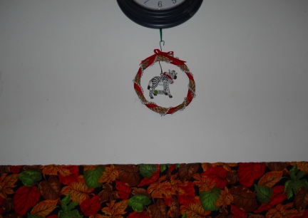 | Zebra Wreath hanging from the clock, counting down til Christmas - 2011-12-02 19:59:32 |